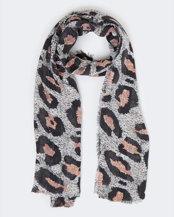 In shades of blush, cream and black, this abstract leopard-print scarf features a semi-sheer design. A fashionable addition to your accessory collection.