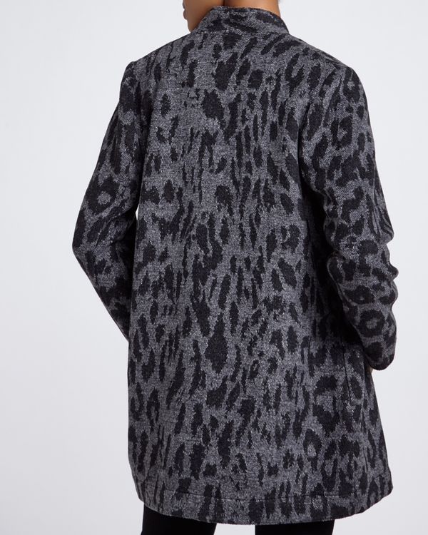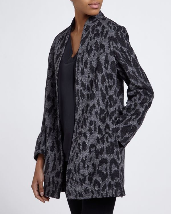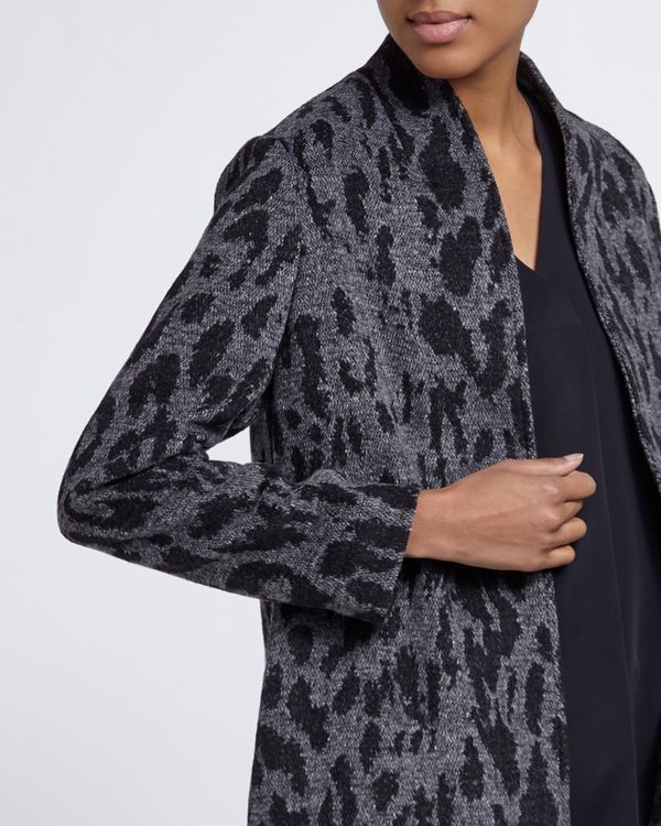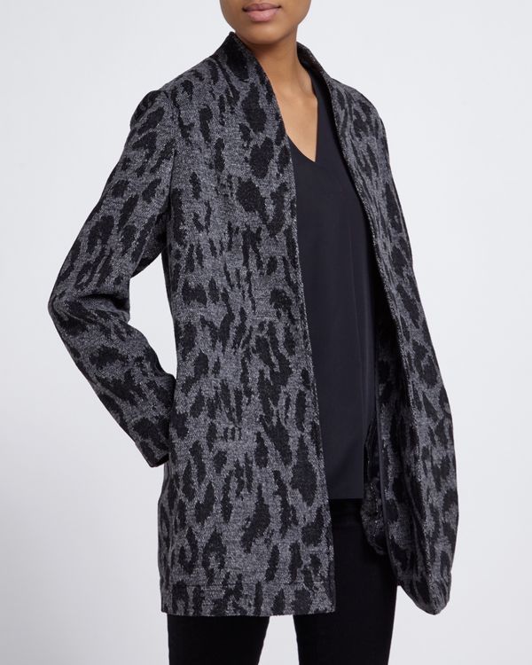 Boasting a striking animal print, this jacket ticks all the boxes. Created with an open front, it features two side pockets for functional appeal.