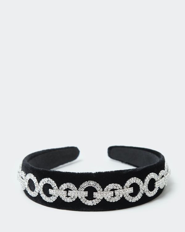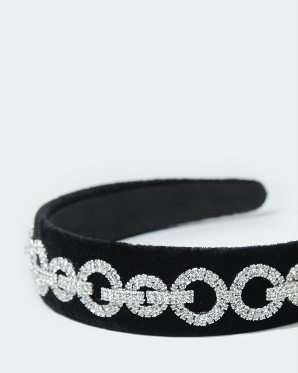 This hairband features gem embellishments on a satin backing. Ideal for dressing up a simple outfit. Multiple styles available.