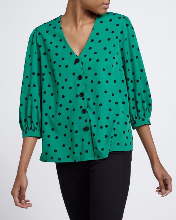 Boasting a charming print, this lightweight and fluid top is created with a button front. Partner yours with tailored trousers for instant style points.