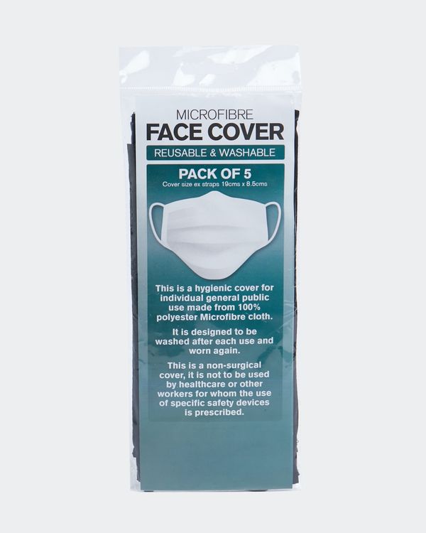 Reusable and washable face mask for general public use. Made from polyester microfibre cloth, it comes in a pack of 5.