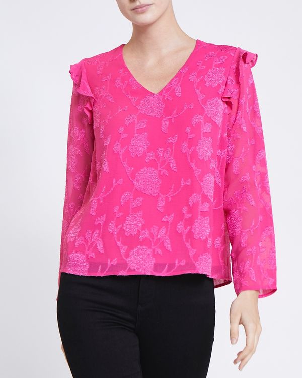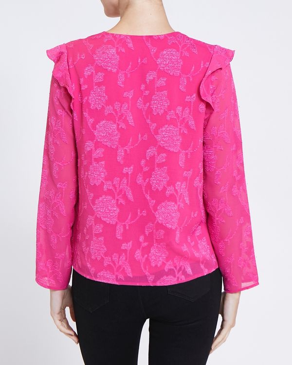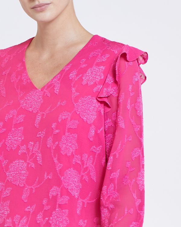 Defined by its marvellous floral jacquard design, this relaxed, lightweight blouse features a flattering V-neck and voluminous frill trims.