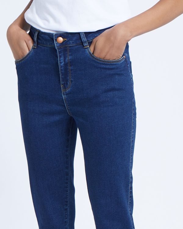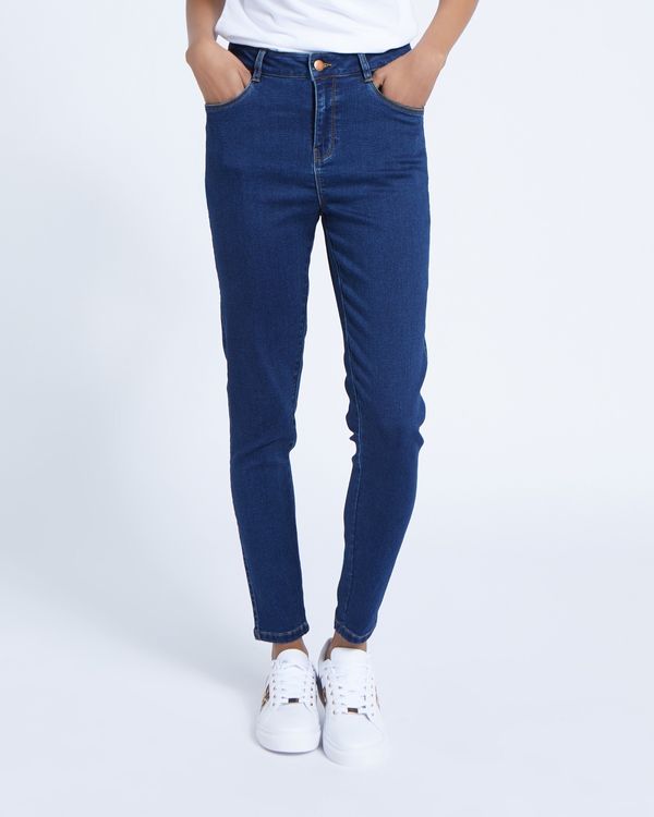 Enrich your wardrobe essentials with these flattering skinny jeans. Created with stretch, they feature timeless contrasting stitching and five pockets.