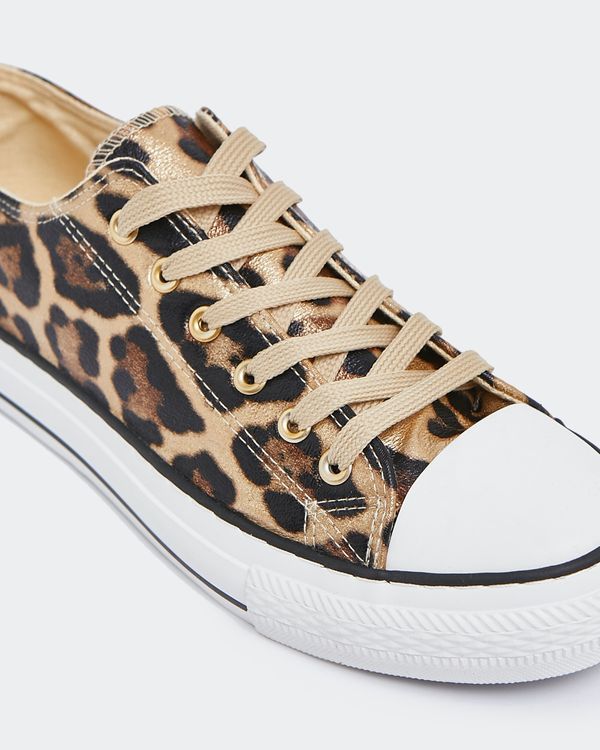 Working a classic contrast toe-cap design, these lace-up shoes are amped up with a striking metallic leopard print. Perfect for casual wear.