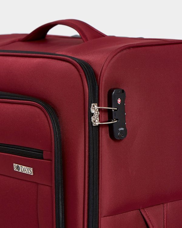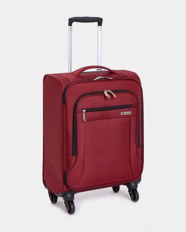 Durable travel case with telescopic handle and four all-spinner wheels. These cases feature two front-facing zip-opening sections and a TSA combination lock for security.