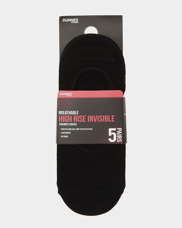 Breathable high rise invisible trainer socks with silicone heel grip and a lightweight construction. Pack of 5.