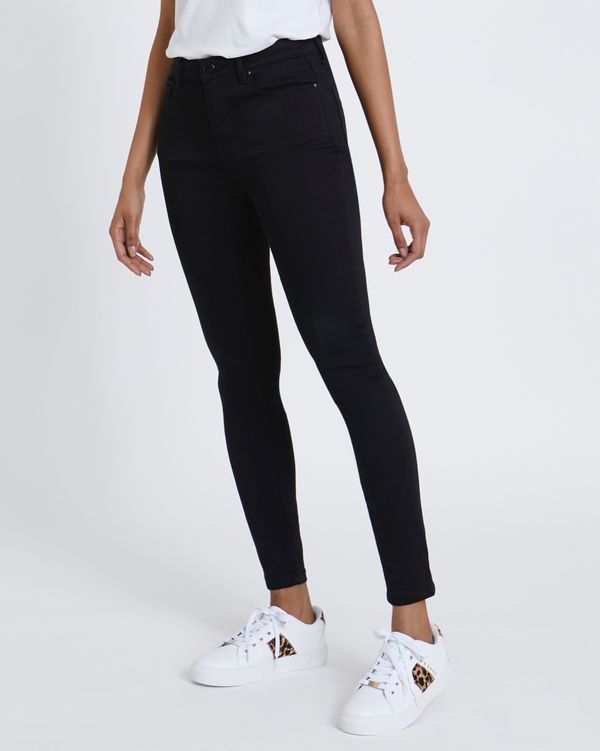 Our mid rise skinny jeans are made with stretch denim for a comfortable fit. Detailed with a classic five pocket design, these feature a zip fly and belt loops.