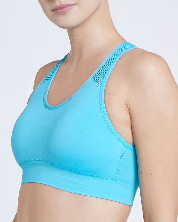 Super soft, this non-wired, seamfree sports bra is an exercise essential. This bra is perfect for light impact exercise with a racer back and features removable pads.