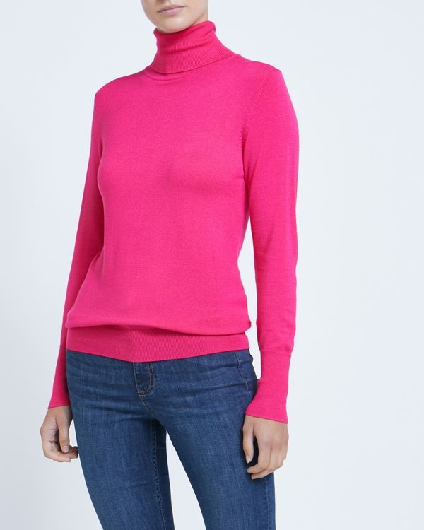 Crafted with an ultra soft handle and classic ribbed trims, this slim fitting polo neck jumper is a wardrobe cornerstone. Layer it or team it with jeans, it will lend simple chic to any look.