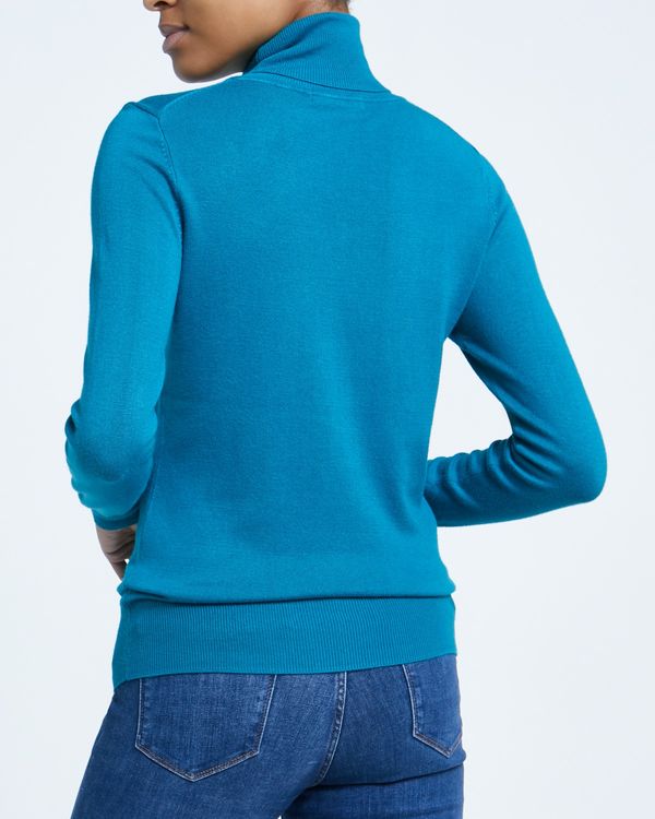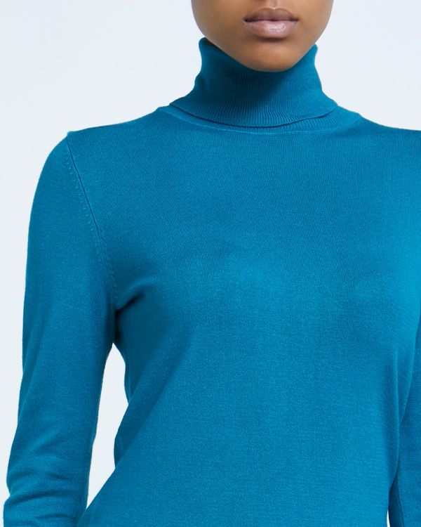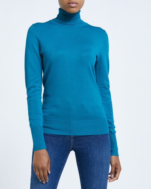 Crafted with an ultra soft handle and classic ribbed trims, this slim fitting polo neck jumper is a wardrobe cornerstone. Layer it or team it with jeans, it will lend simple chic to any look.