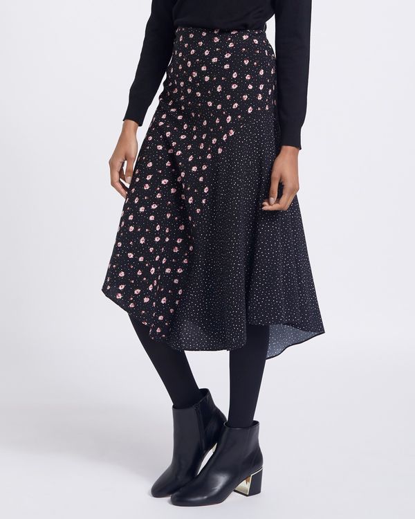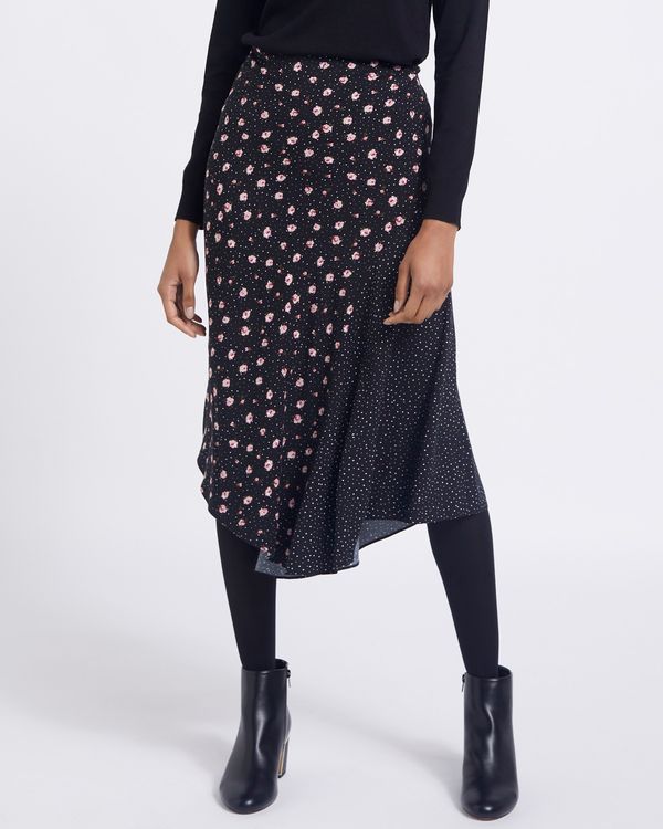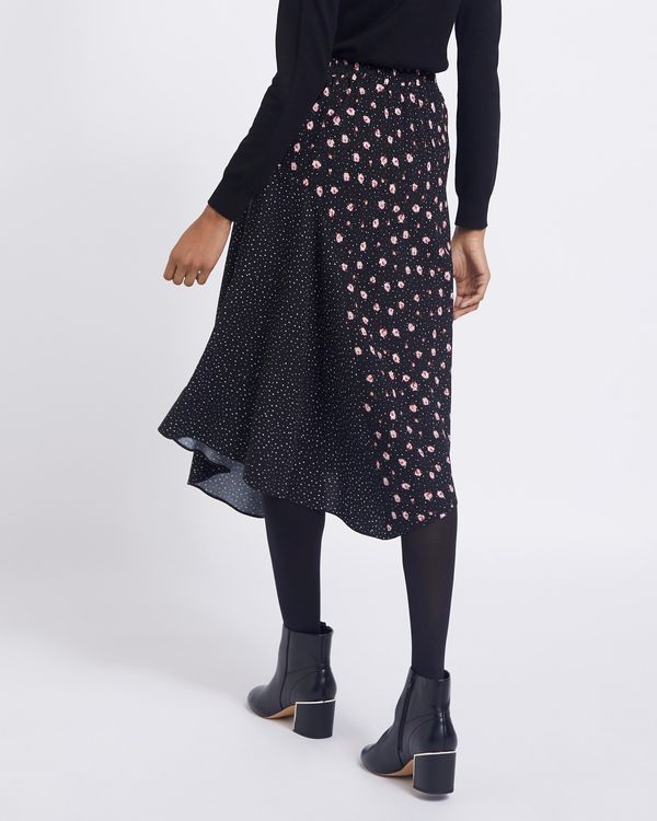 Falling to a flattering midi length, this fluid skirt features two different prints and an elasticated waist for added comfort and ease.