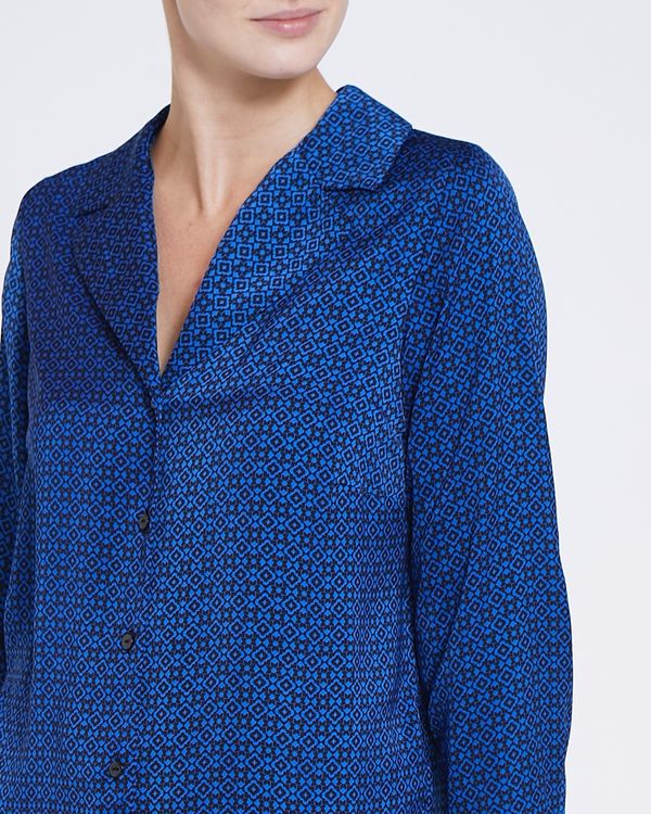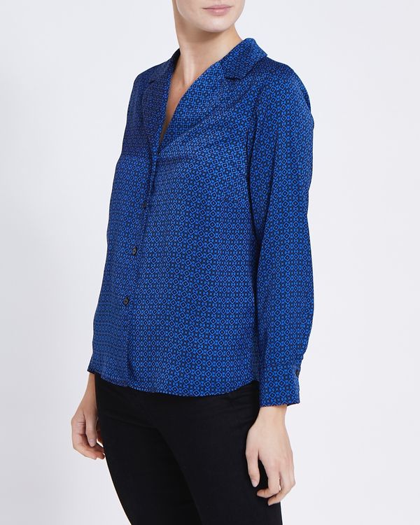 This satin blouse is created in a relaxed design that's full of movement. Featuring darting at the front, it presents a stylish all-over geometric pattern.