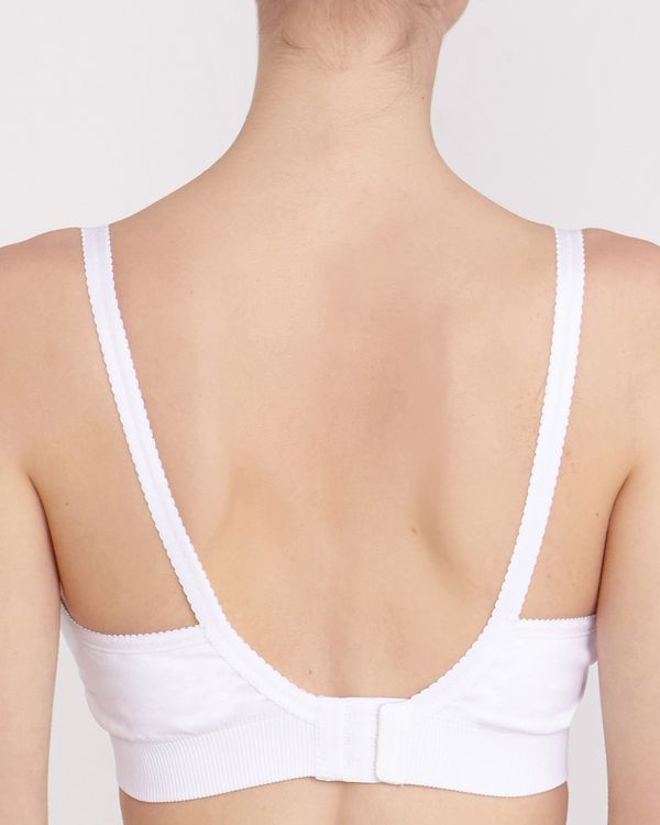This seam-free nursing bra has hooks at the front to let down the cups with ease. Fitted with an elasticated underbust and adjustable straps, this non-wired design also has removable pads for added shape.