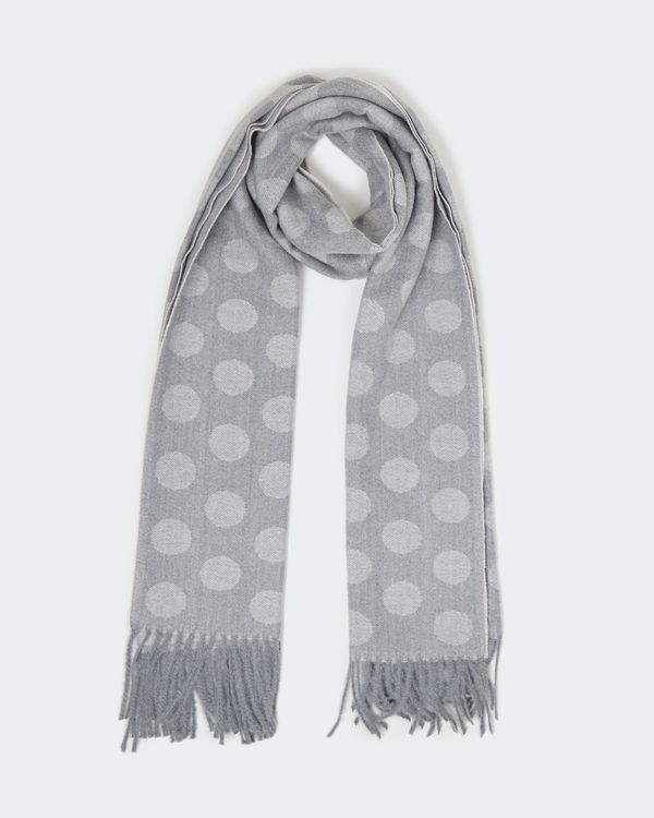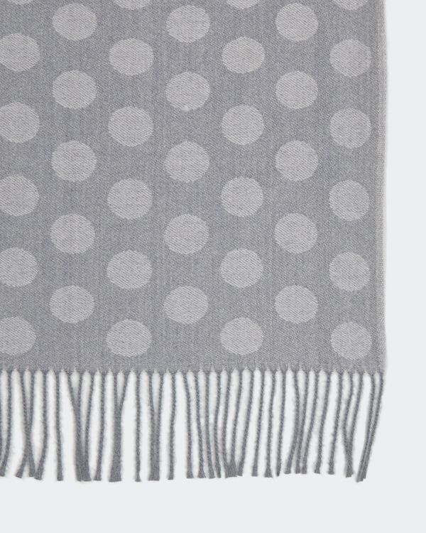 Wrap up in softness with this spot scarf. Designed in neutral shades of grey, it will coordinate with much of your wardrobe.