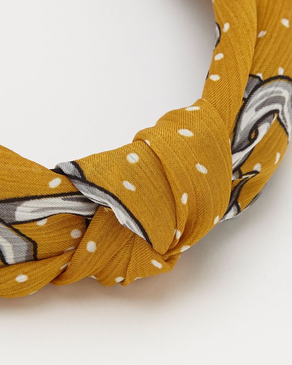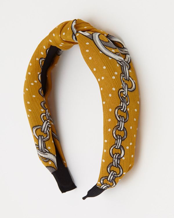 Presenting a textured finish in a structured design, this hairband works a knot front for a chic touch. A great way to energise your accessories.