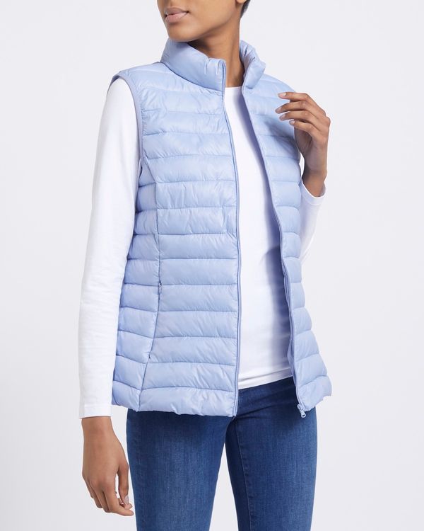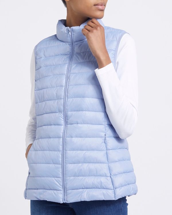 This handy gilet packs away into a small bag with ease. In a sleeveless style with a front zip and pockets at the sides, it is shower-resistant whilst providing a superlight thermal effect thanks to a special filling that retains your body heat to create warmth without adding weight. Machine washable.