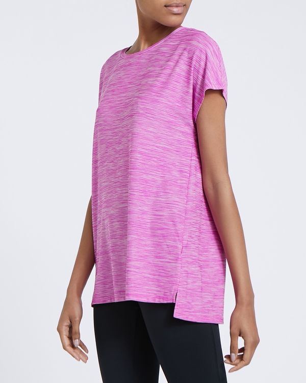 This stylish textured T-shirt is created in a breathable and fast-drying design. Featuring moisture management technology, it presents a four-way stretch construction. An essential for your sportswear.