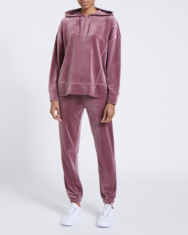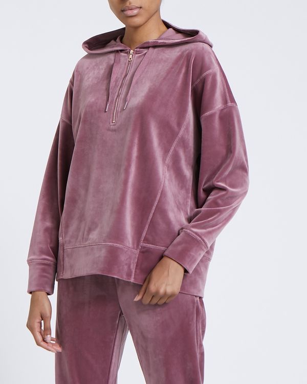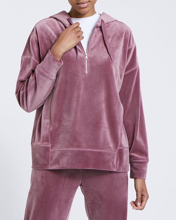 Irresistibly soft velour sweatshirt with a half-zip fastening and a drawstring hood. A sportswear essential.
