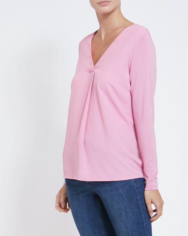 Detailed with a jersey back and sleeves and a contrast front, this simple top is effortlessly elegant. Team with anything from tailored separates to skinny jeans.