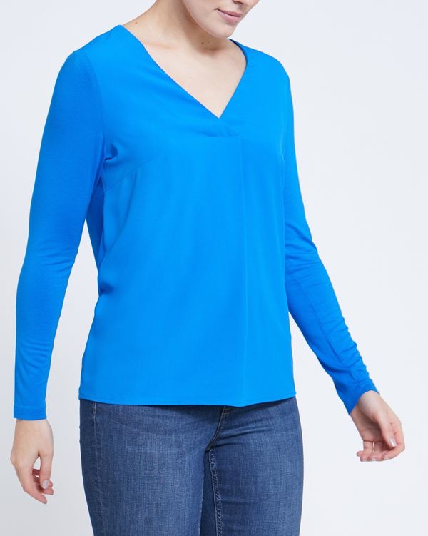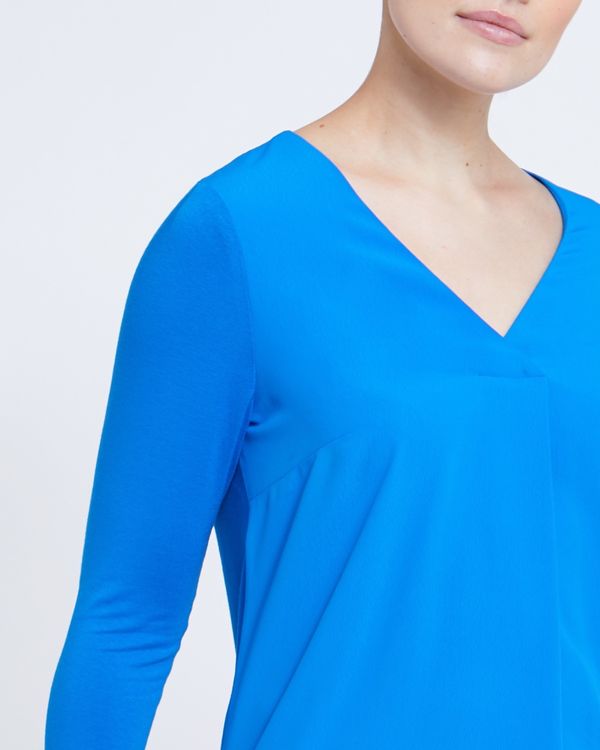 Detailed with a jersey back and sleeves and a contrast front, this simple top is effortlessly elegant. Team with anything from tailored separates to skinny jeans.