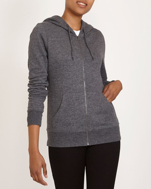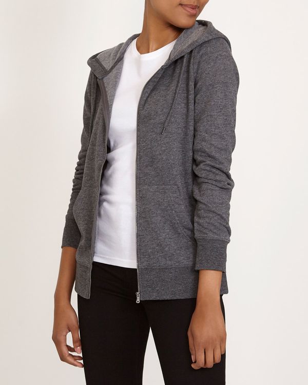 Made in a cotton blend brushed back fleece, this classic zip through works a comfortable and easy-to-wear shape. It's complete with a drawstring hood and side pockets.